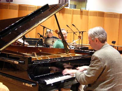 Even though I've seen him play at least two dozen times before, Graewe's ultrasoft touch on the piano keys utterly enthralled me. They were pillowtime caresses, so erotic, even when abrupt changes of tone or velocity were involved. The smallest wrinkles of expression or tonality set off developments in the trio's music, not reactions. A subtle change then pounce pounce pounce wade quiver shave shine. Phenomenal listening and decision-making, reminding me that the highest caliber musicians in the world play this kind of music, and they play it here.