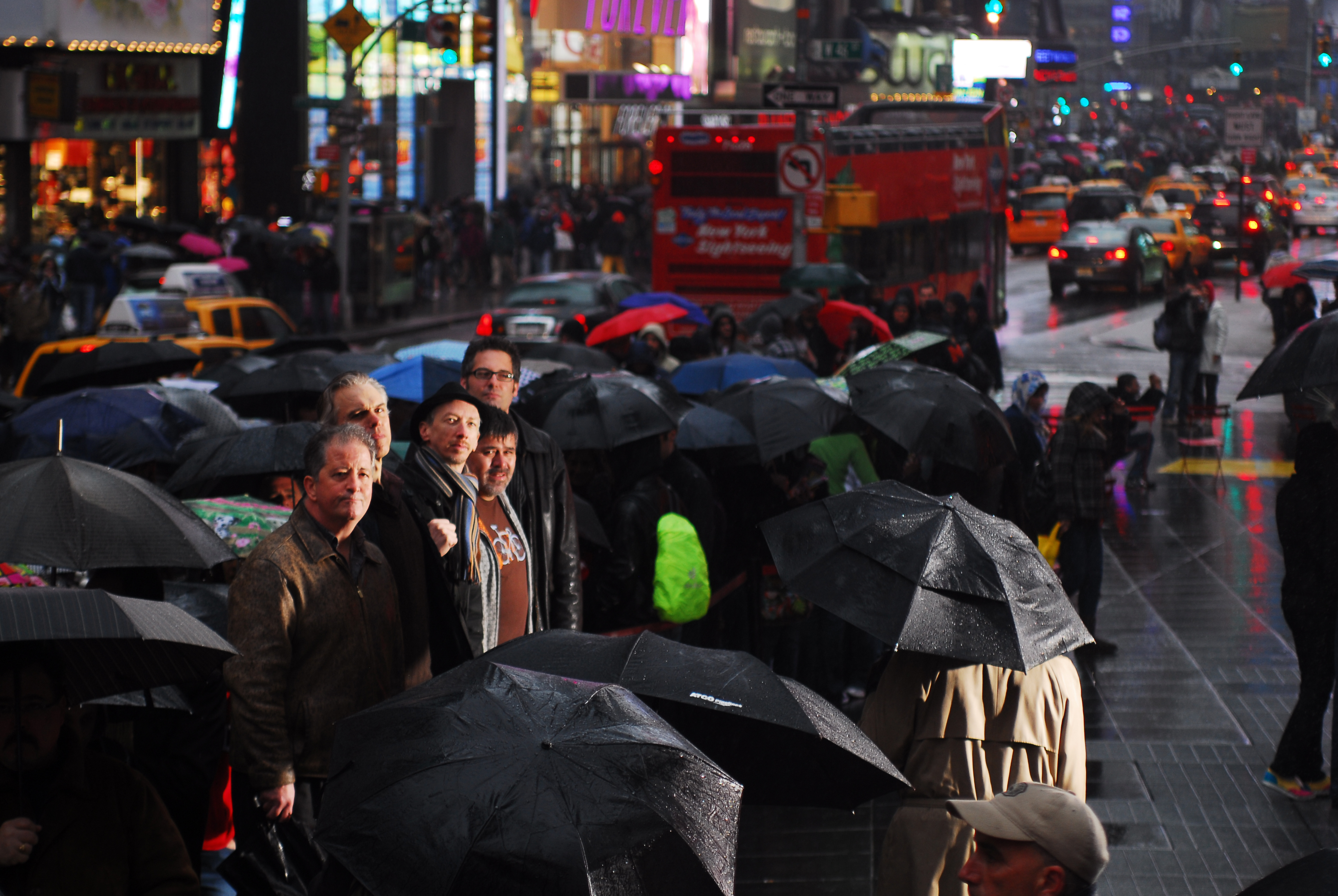2011 Gerry Hemingway Quintet in Times Square, NYC - in umbrellas - Hi Rez [3872 × 2592] 4.7mgs, Web Rez/ photo credit - Jordan Hemingway