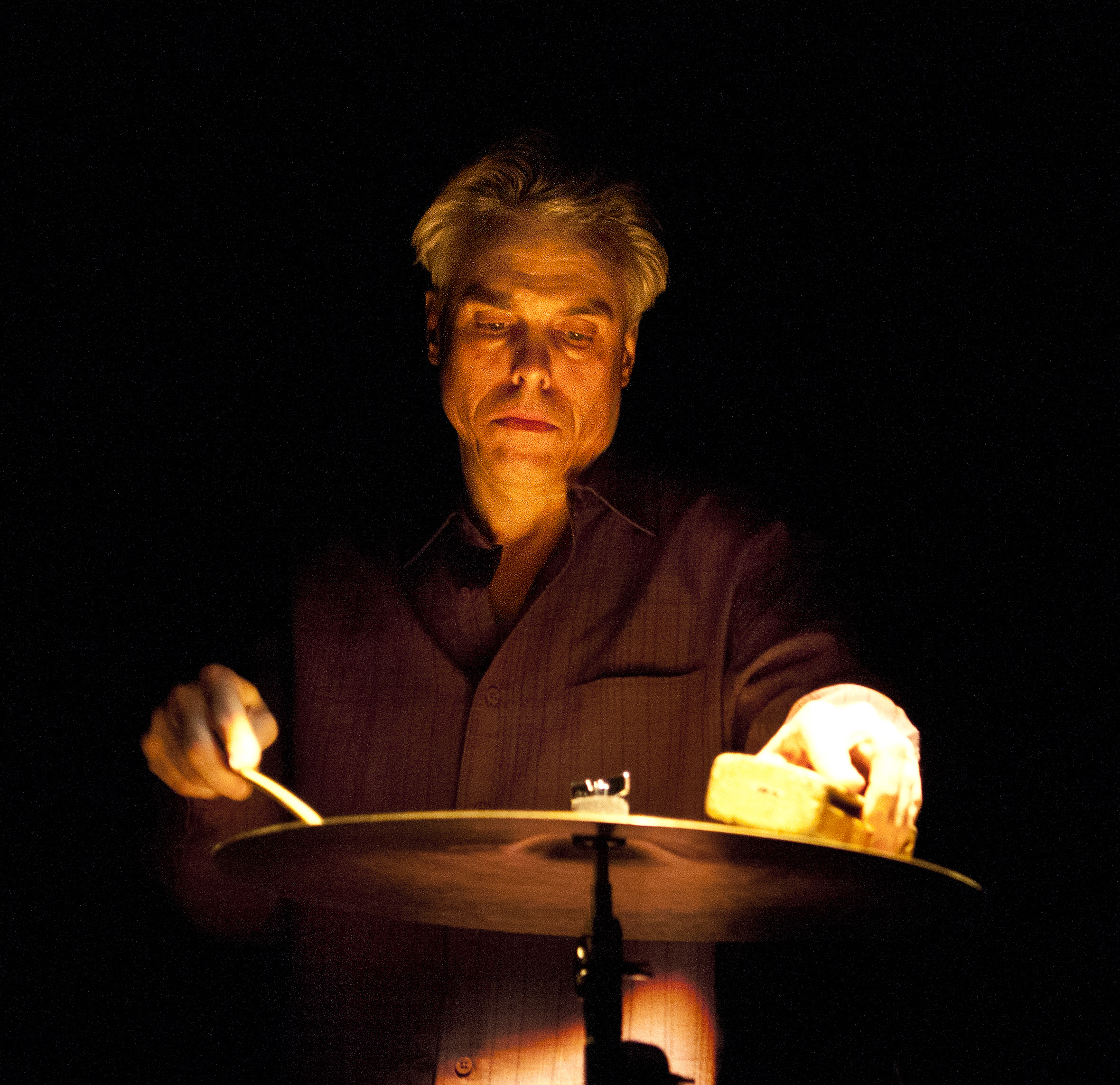 2010 Gerry Hemingway solo performance shot [2360 × 2286] 1.8 mgs, web resolution here (950 × 920) and here (450 × 436) photo credit - Dragan Tasic